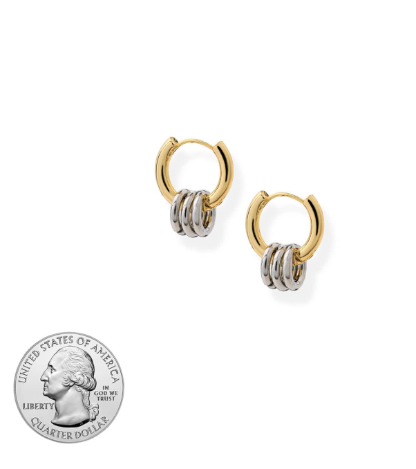 The Arlo Earrings are perfectly sized huggie hoops featuring a sleek modern design and a stylish gold and silver mix. Designed to stay snug and secure, these .5" wide earrings add a subtle yet eye-catching touch to your look. Crafted to be water- and tarnish-resistant, they’re the perfect durable luxury for everyday wear.