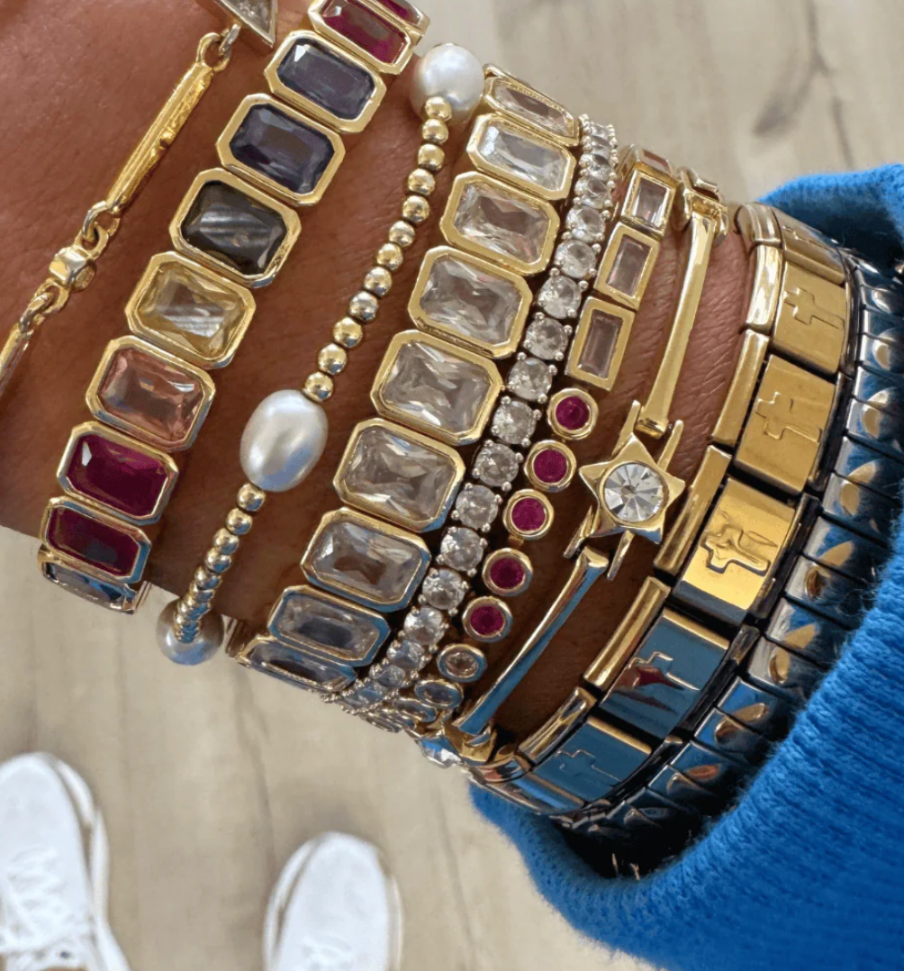 Gigi Stretch Bracelets feature baguette stones that elevate your wrist stack with striking color and dimension. Designed for effortless layering, these bracelets offer a bold, casual sparkly look. Perfect for mixing and matching, they enhance any outfit with subtle sophistication and impactful style.