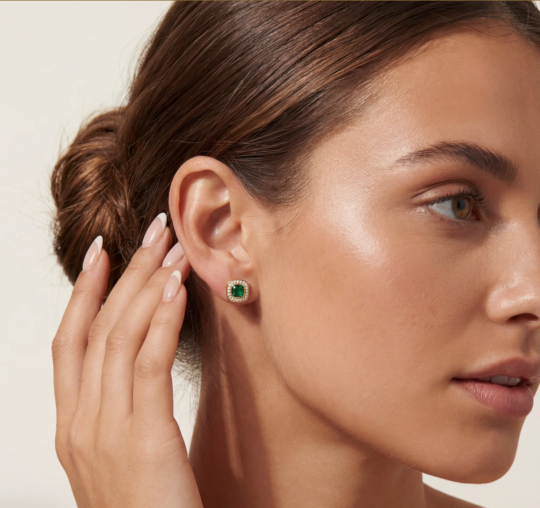 Elevate your elegance with the Princess Pave Stud Earrings, featuring a delicate arrangement of shimmering stones that catch the light with every movement.