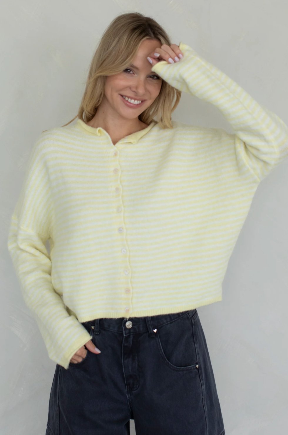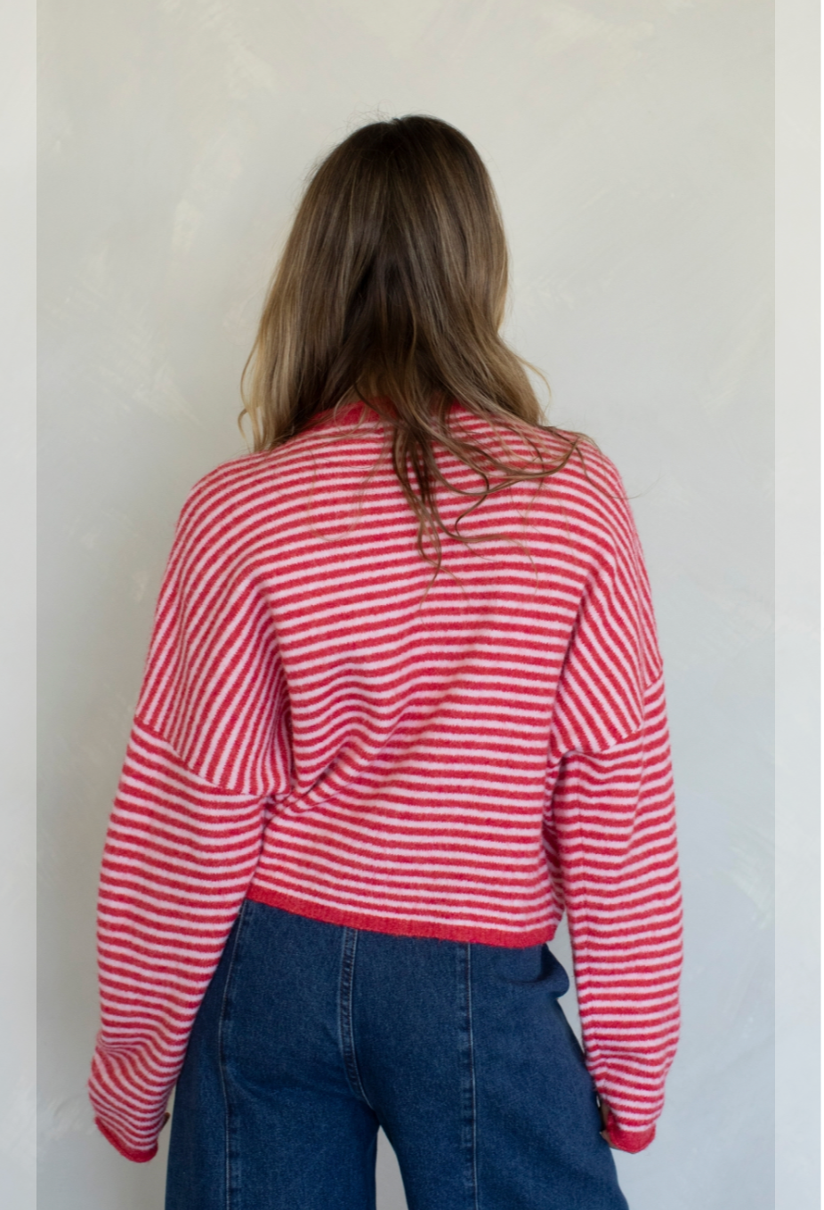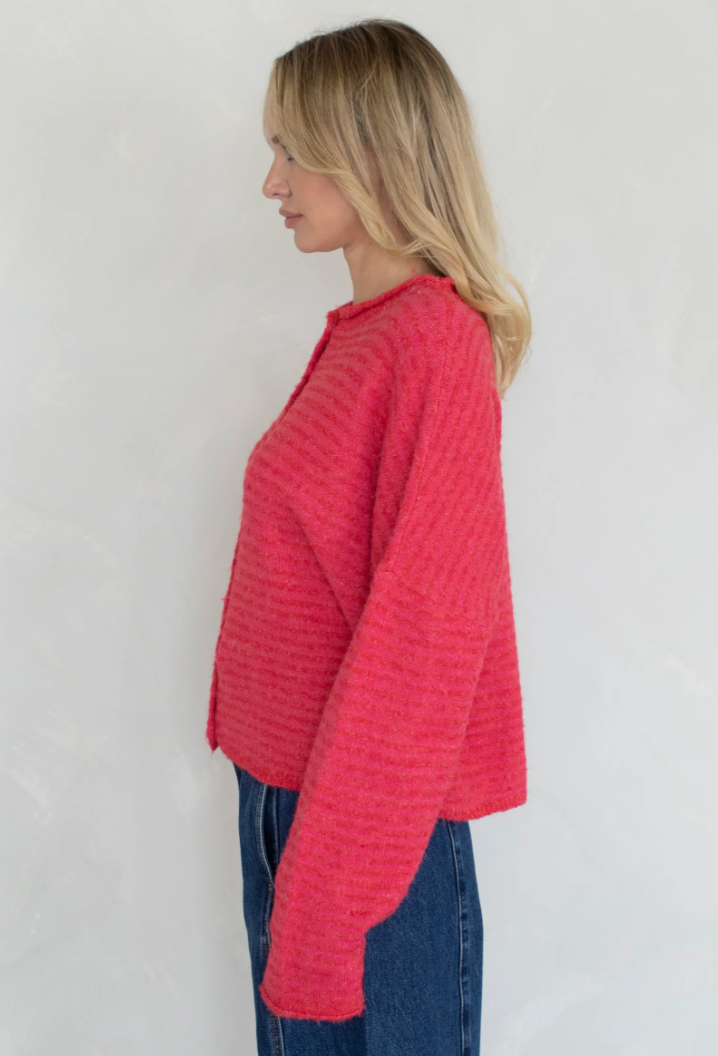 Your favorite Piper Cardigan in a mini striped pattern and available in the season's hottest colors!! So versatile in style, can be adapted to fit into anyone's wardrobe. Oversized, drop shoulder fit.