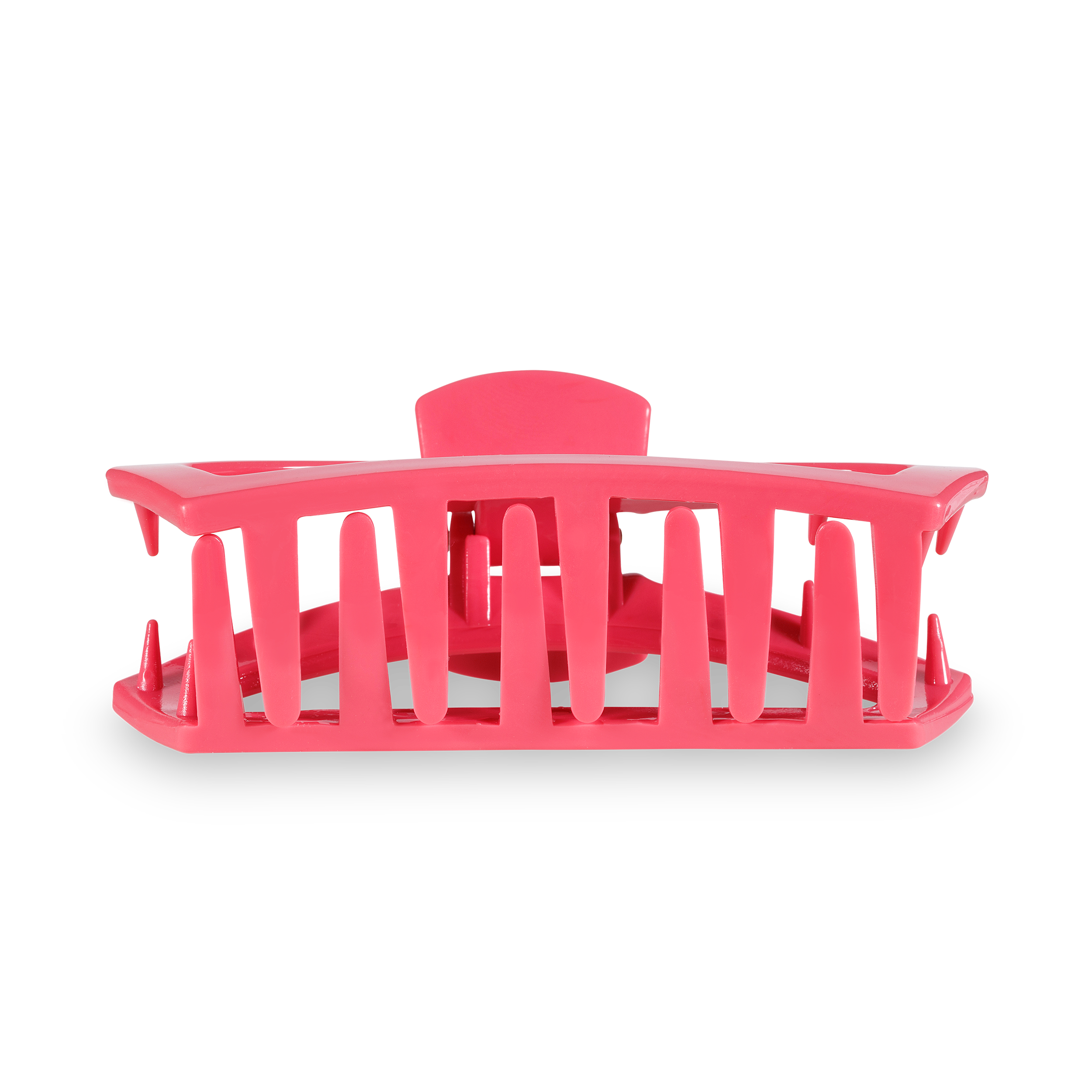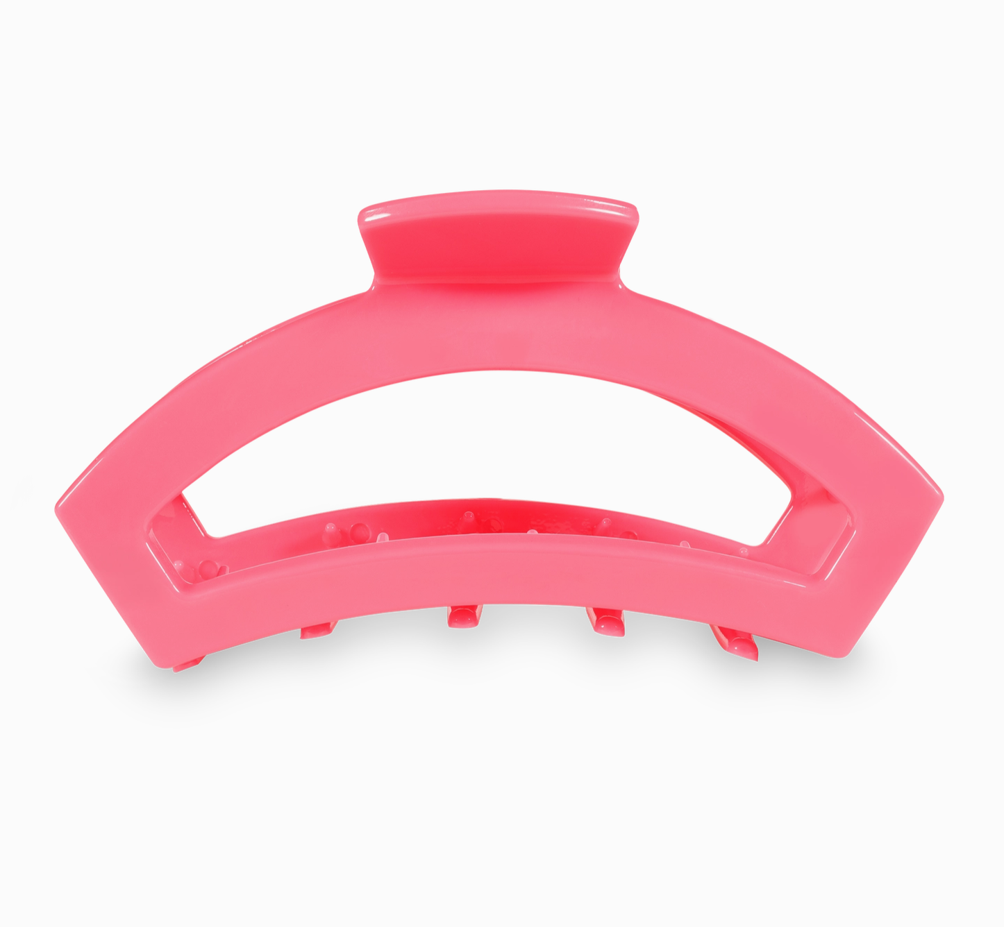 Teleties Open Hair Clip offers the same incredible advantages as their Classic Claw Clip, but with a unique open-style design that allows your hair to show through. Say goodbye to breakable clips! Teleties has perfected the hair tie and now have re-invented the hair clip. Each clip has bendable teeth that take back to shape, they work on all hair types and have a strong hold. Hold your hair and enhance your style with the new TELETIES Clip! Large clips are great for thick hair. The large clip is 4.5 inches long.