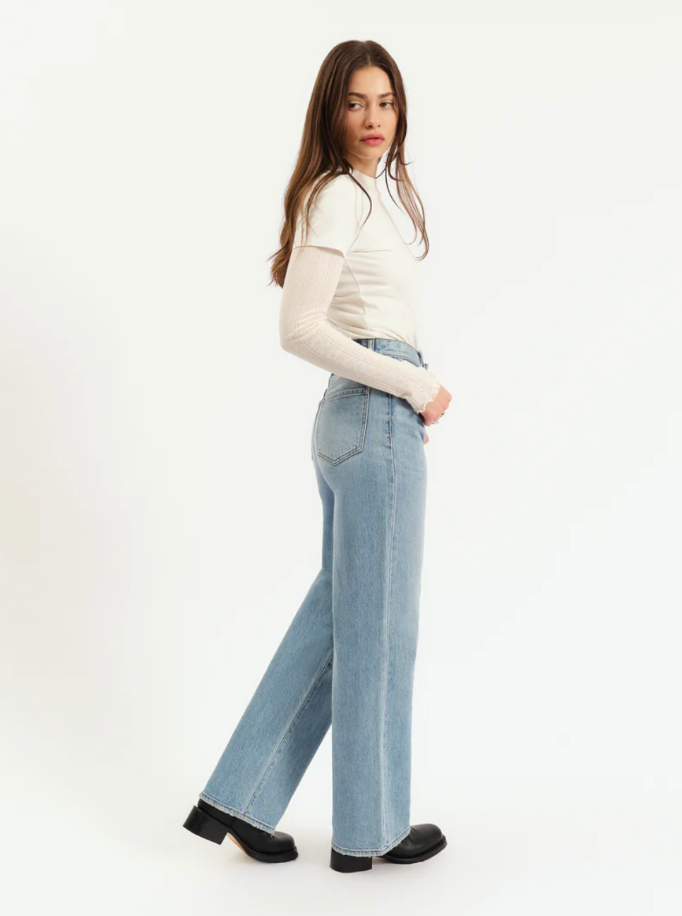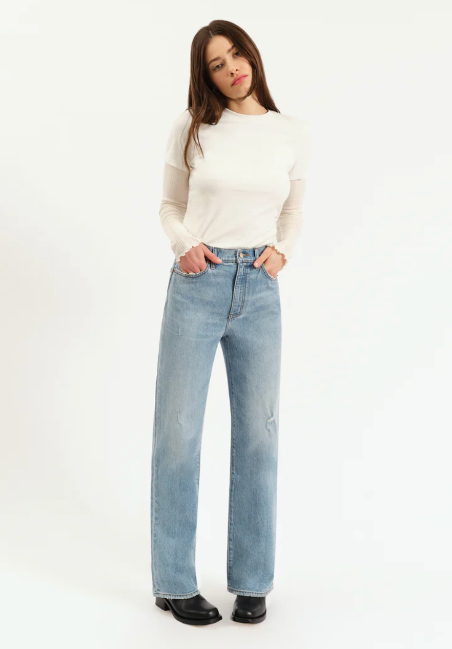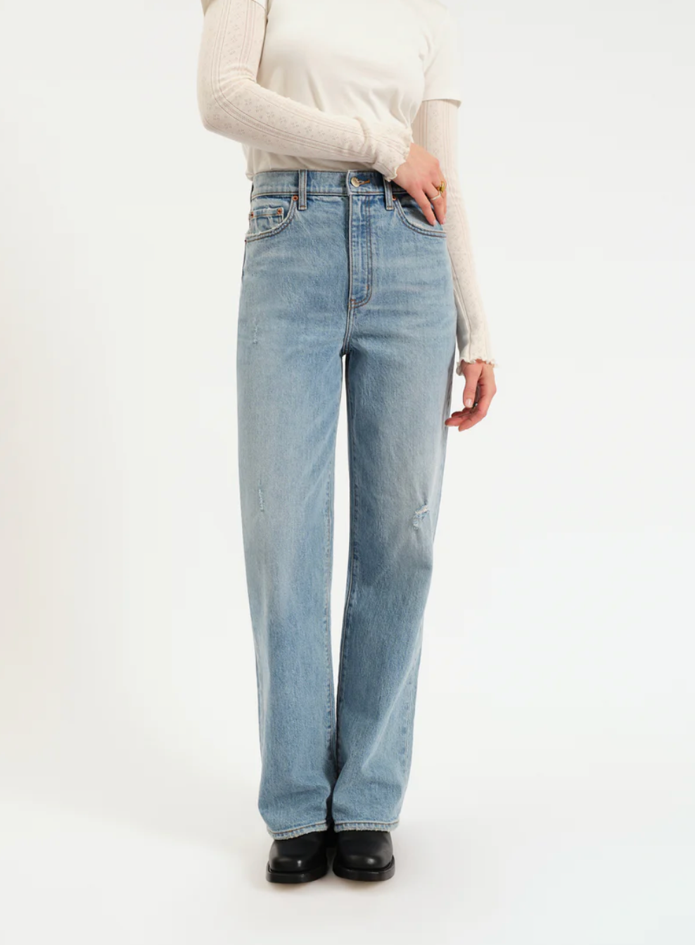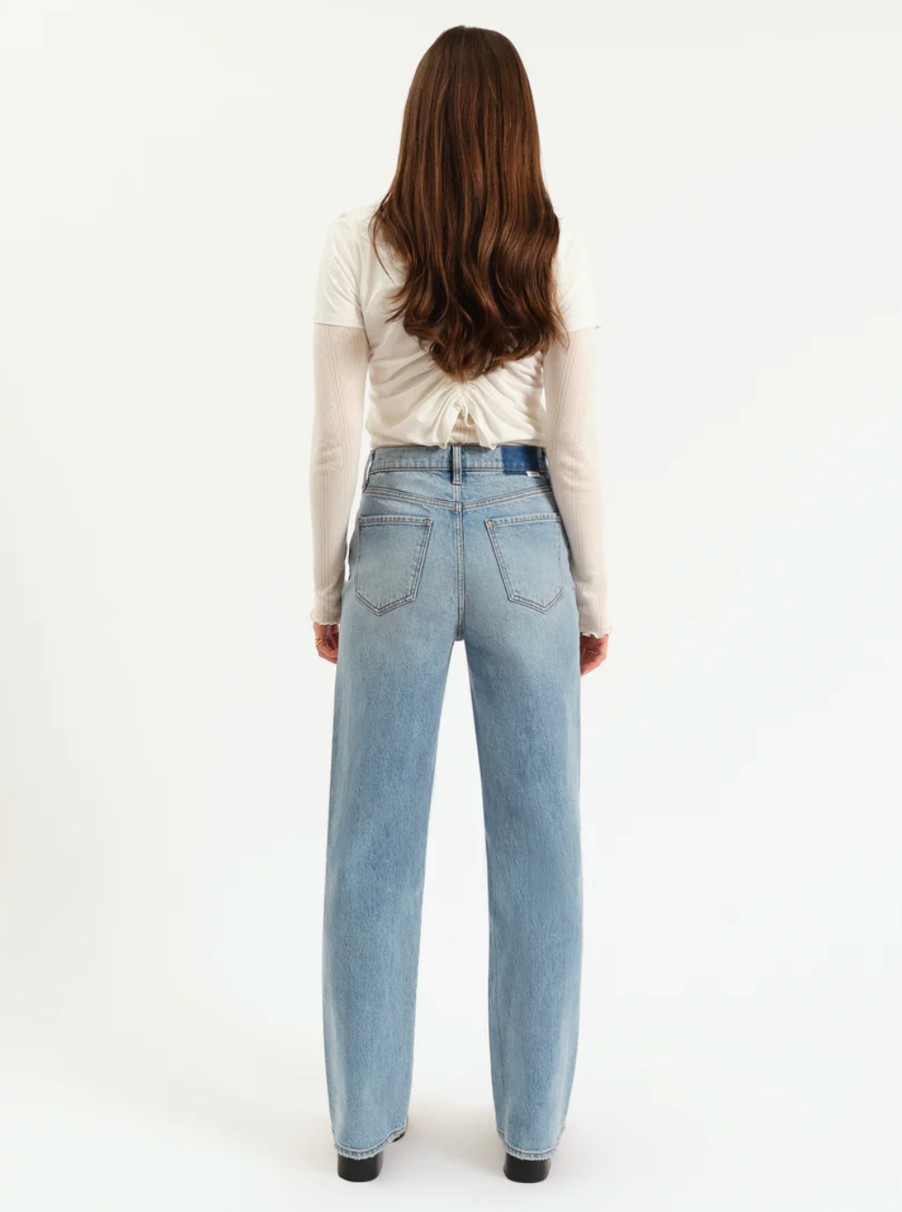 The City Straight in Be Mine Vintage is a high rise straight leg jean in a timeless light blue wash. Clean hems and straight lines make this a versatile jean for any occasion.