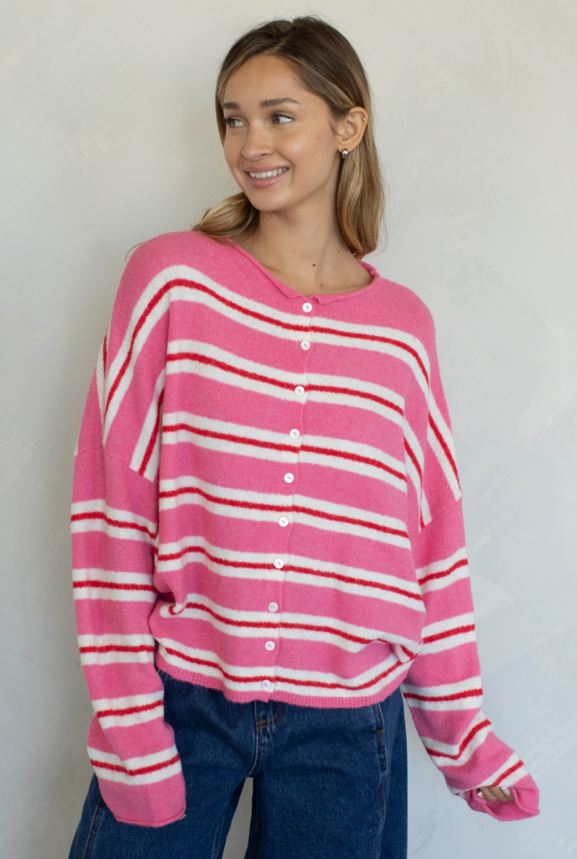 Multi-striped Piper Cardigan.
